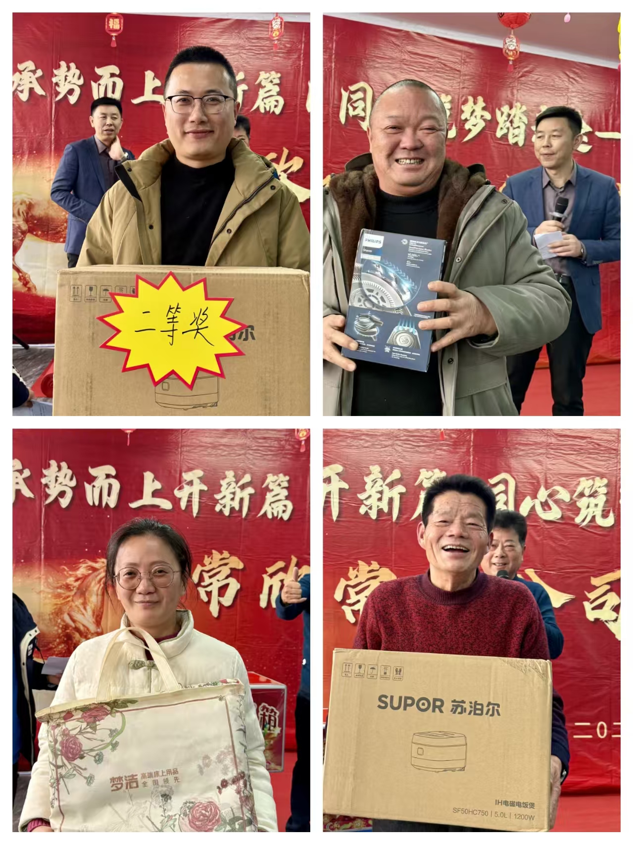 晚會的最高潮在袁柏強(qiáng)董事長登臺時到來。作為壓軸環(huán)節(jié),董事長親手抽取了本次年會的特等獎兩名,并將這份滿載祝福的幸運(yùn)送到了獲獎員工的手中。在熱烈的掌聲與歡呼聲中,袁董事長向全體員工致以新年祝福,并對公司未來發(fā)展提出殷切期望,強(qiáng)調(diào)公司將堅持創(chuàng)新驅(qū)動、以人為本,與全體員工共創(chuàng)共享發(fā)展成果。